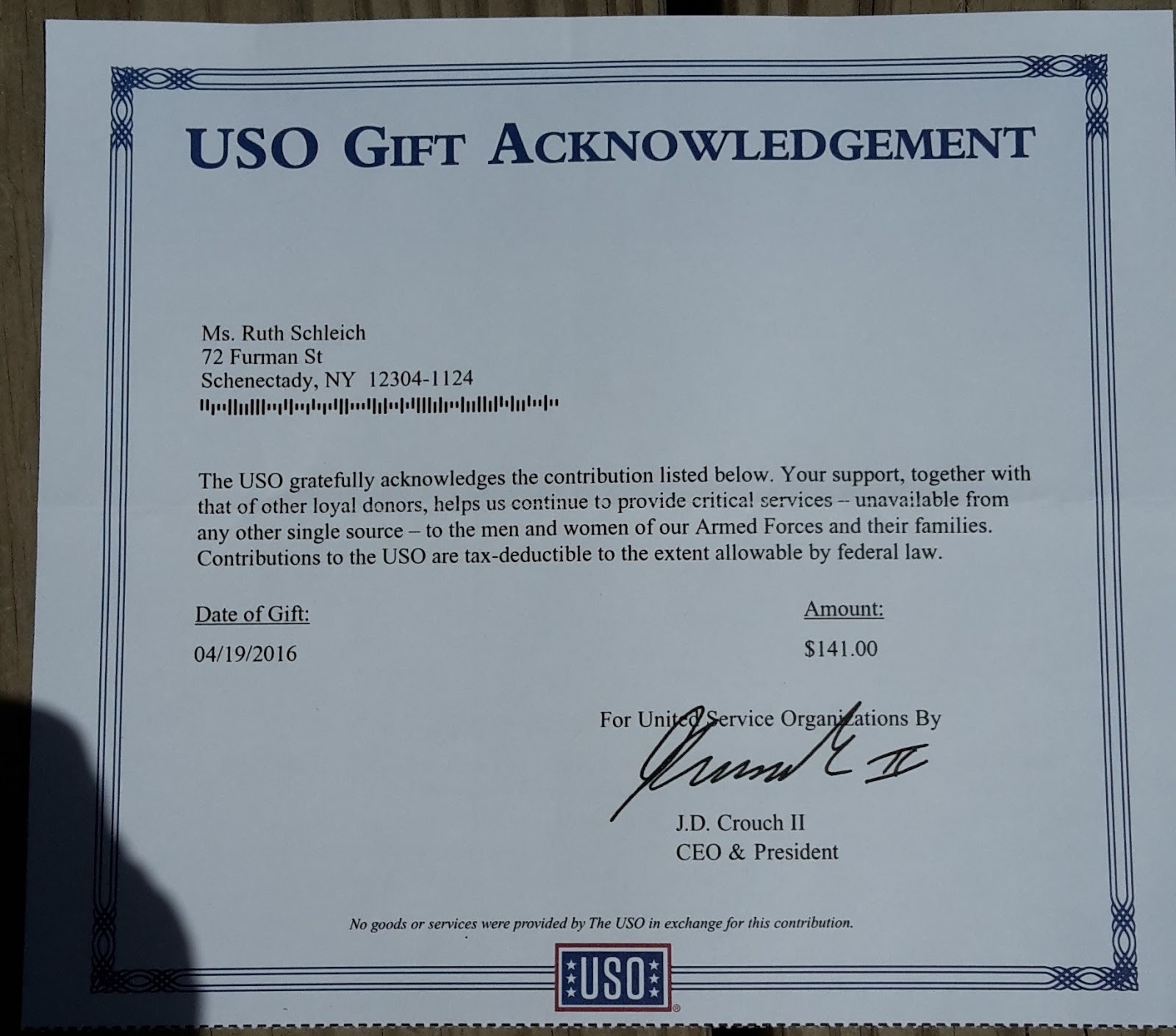 Well 2016 is off and running, most of the tax paperwork is done, final Military donation for the year was made and for the last quarter , with sales contributions of $69.90 from my military customers and I pitched in a final amount to get us to the $100 level. With the total donation for the year coming in at $598.00 my Military customers rocked the USO this year, hoping that 2016 we can do it again.